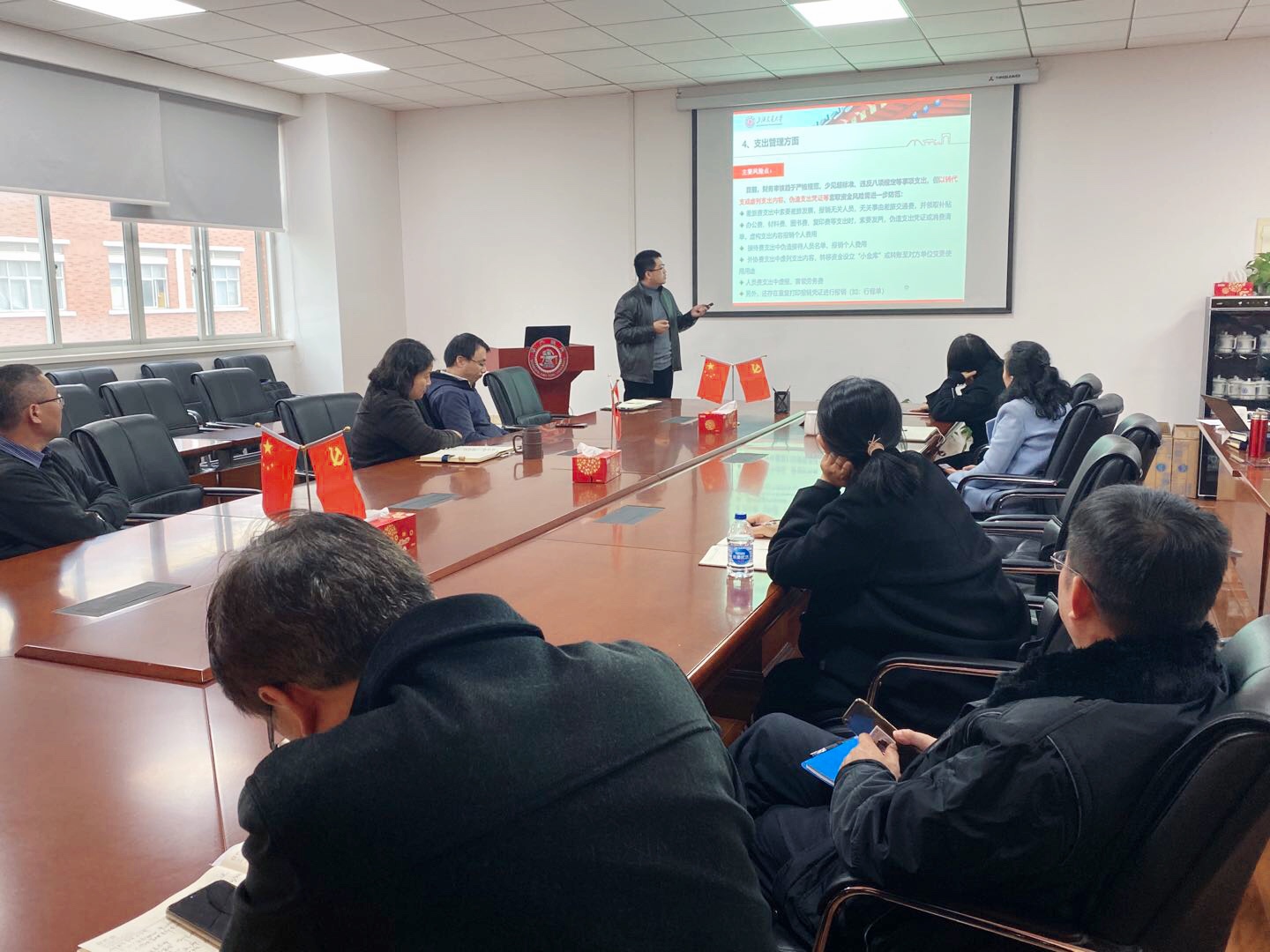 会上,孟祥琦结合近期文件精神及学校部署,聚焦财务风险向与会人员解读现行财务政策,常见案例,倡议与会人员提升防范能力。陈思诺根据学校规章制度,向与会人员解析现行财务报销制度。