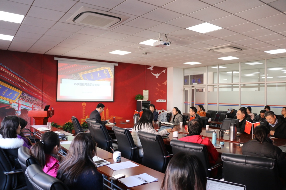 随后召开药学院领导班子民主生活会教师意见征询会,面对面听取一线干部教师对学院领导班子及班子成员、干部队伍及学院发展的意见和建议。刘建新主持会议。