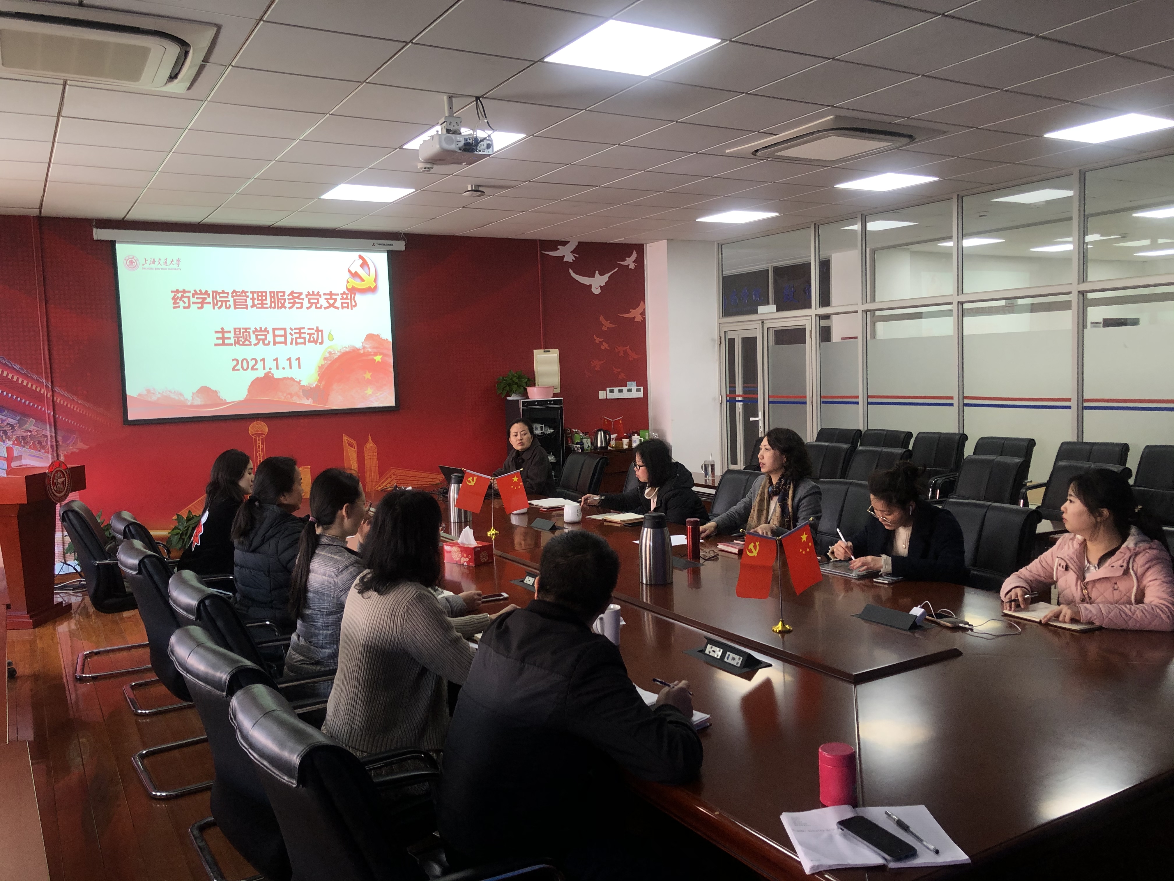 1月11日下午,药学院管理服务党支部在5-412会议室组织召开主题党日活动,本次活动以“党建引领管理,提升服务效能”为主题,会议由支部书记李伟主持,全体党员参加会议。