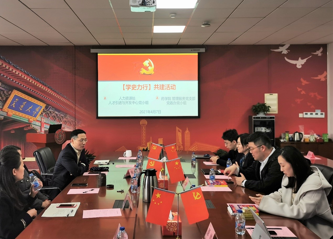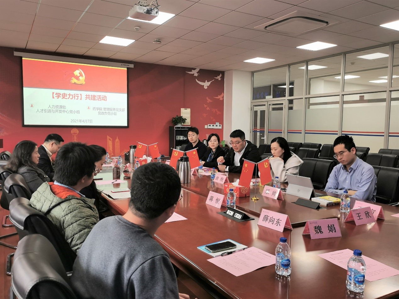 4月7日,人力资源处人才引进与开发中心党小组与药学院管理服务党支部党政办党小组在药学院开展了党小组共建活动。人力资源处副处长、人才引进与开发中心主任陆琪,副主任曲欣及中心成员,药学院党委书记刘建新、院长张翱、党政办主任李伟和新进青年教师一同参与了本次共建活动。会议由李伟主持。