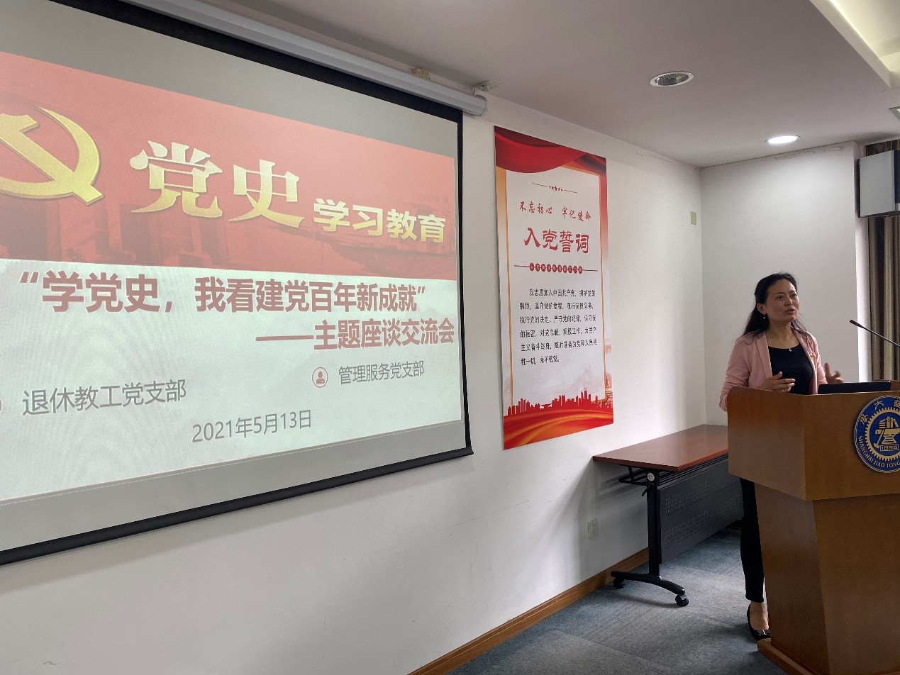 5月13日下午,药学院管理服务党支部和退休党支部联组开展“学党史,我看建党百年新成就”主题党日活动。会议由党支部书记李伟主持。