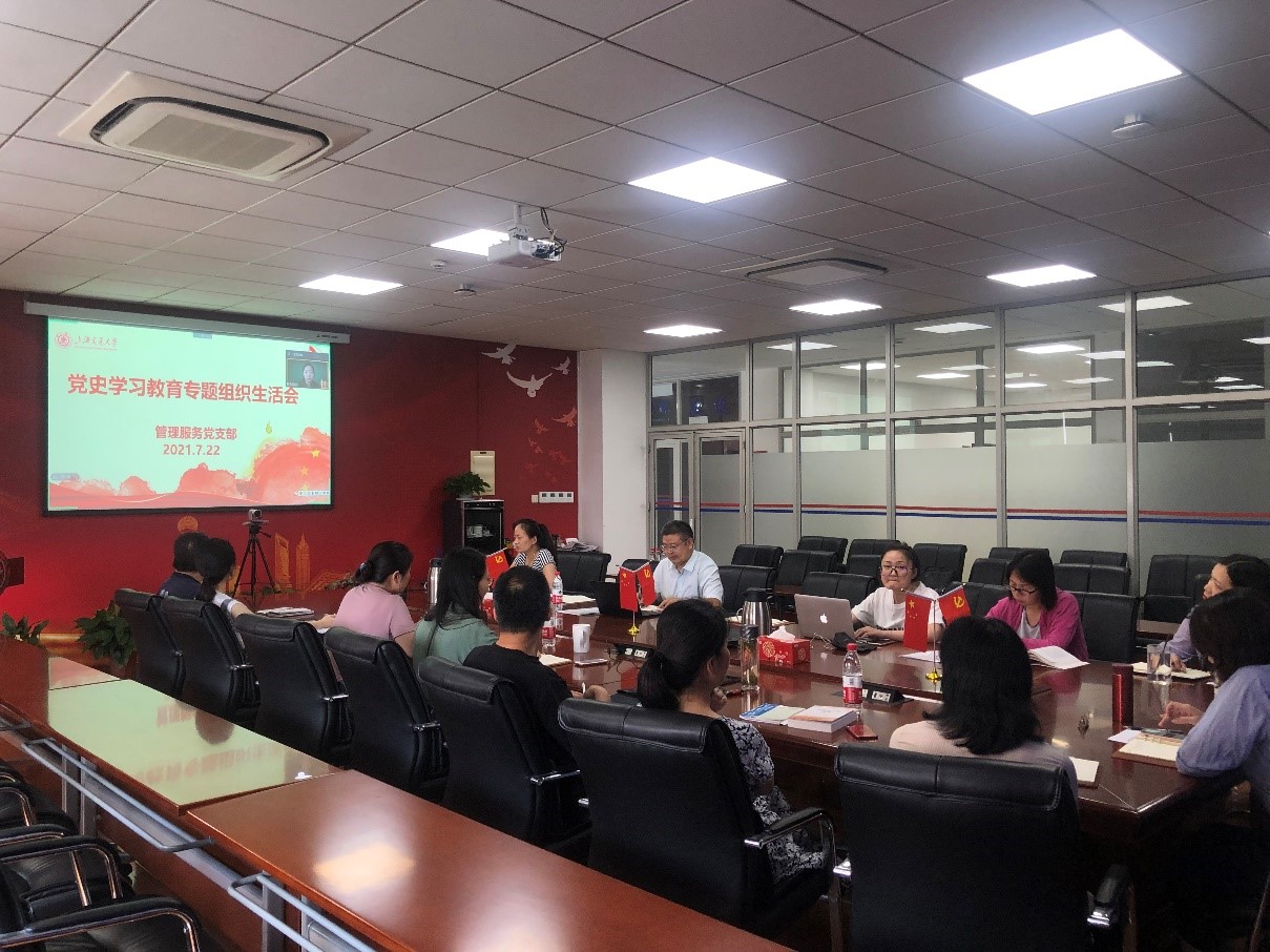 今年是中国共产党成立百年华诞,在学校深入开展党史学习教育之际,7月22日下午,药学院管理服务党支部在生物药学5-412会议室组织召开党史学习教育专题组织生活会,会议采用线上+线下同步进行,支部全体党员参加会议。学院党委书记刘建新、副书记叶定剑以普通党员身份参加会议,党委委员、副院长邱明丰列席会议,会议由党支部书记李伟主持。