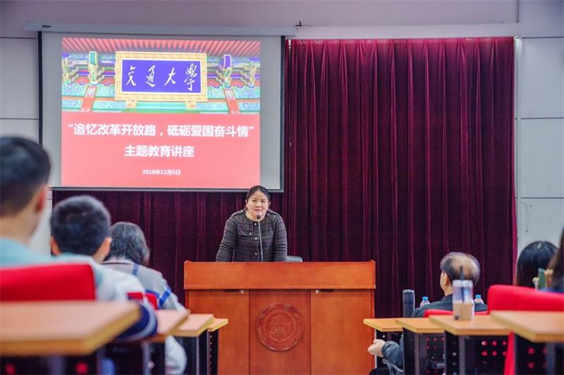 2018年12月5日,药学院 “追忆改革开放路,砥砺爱国奋斗情”主题教育讲座在陈瑞球楼114号举行。学院长聘教授、药分和代谢组学课题组组长、博士生导师阎超教授做专题报告。药学院党委书记刘建新、副书记孟祥琦、副院长邱明丰及学院师生一百三十余人参加活动,讲座由刘建新主持。