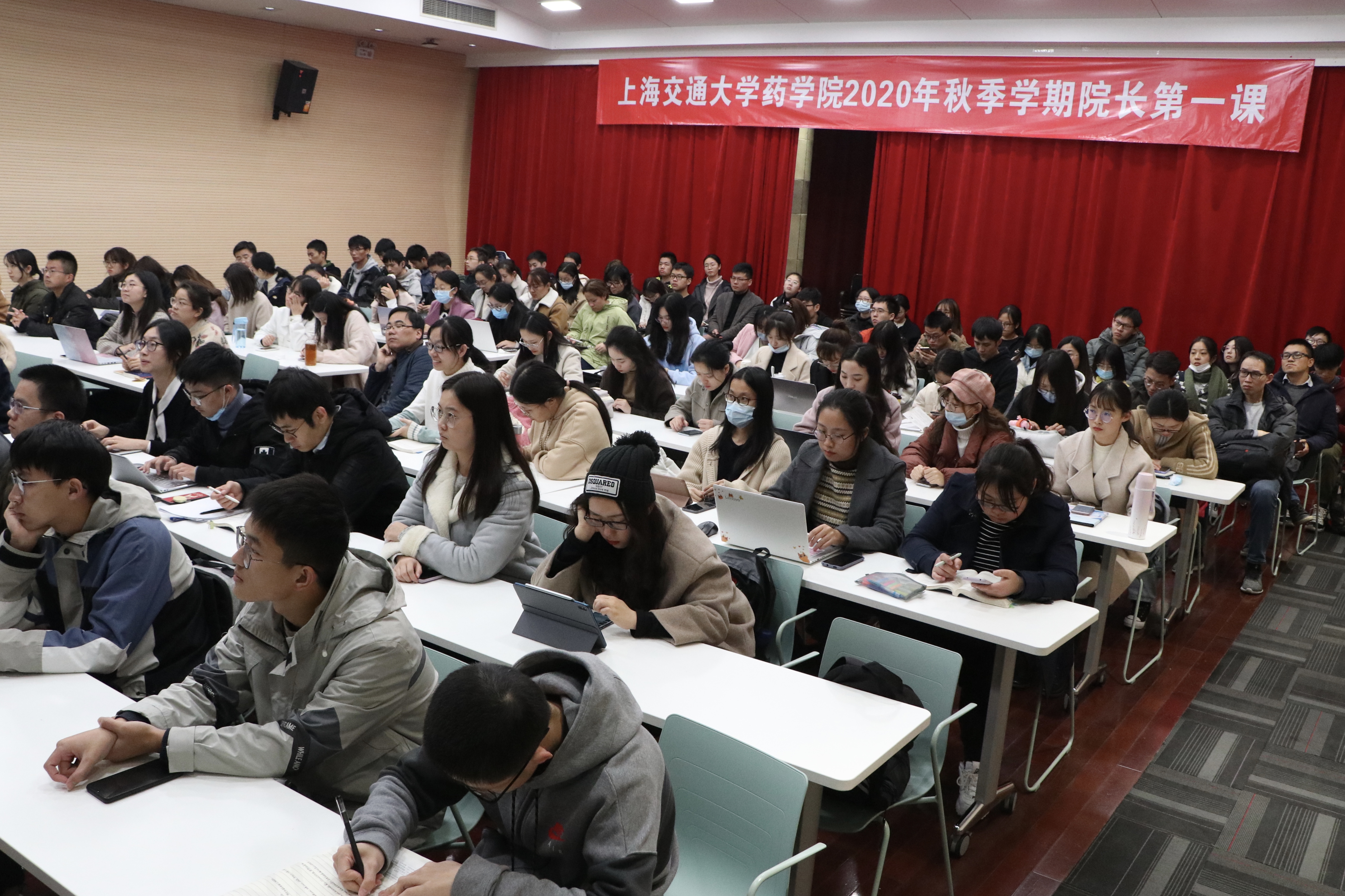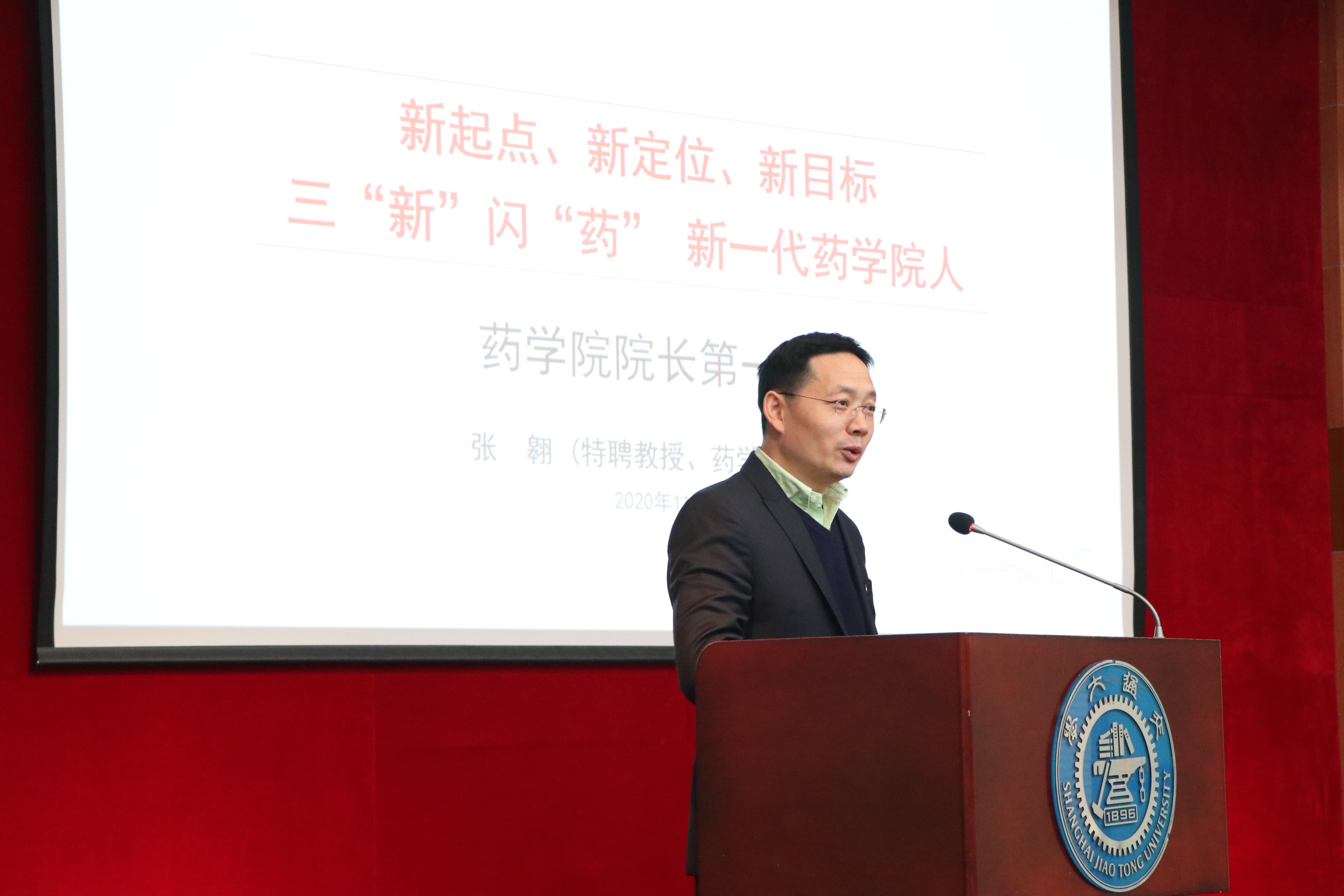 2020年11月30日下午16:00,药学院“院长第一课”在药学生命楼树华多功能报告厅举行。院长、特聘教授张翱以 “新起点、新定位、新目标,三‘新’闪‘药’ 新一代药学院人”为主题作报告。药学院党委副书记孟祥琦与全体2020级新生参加活动。