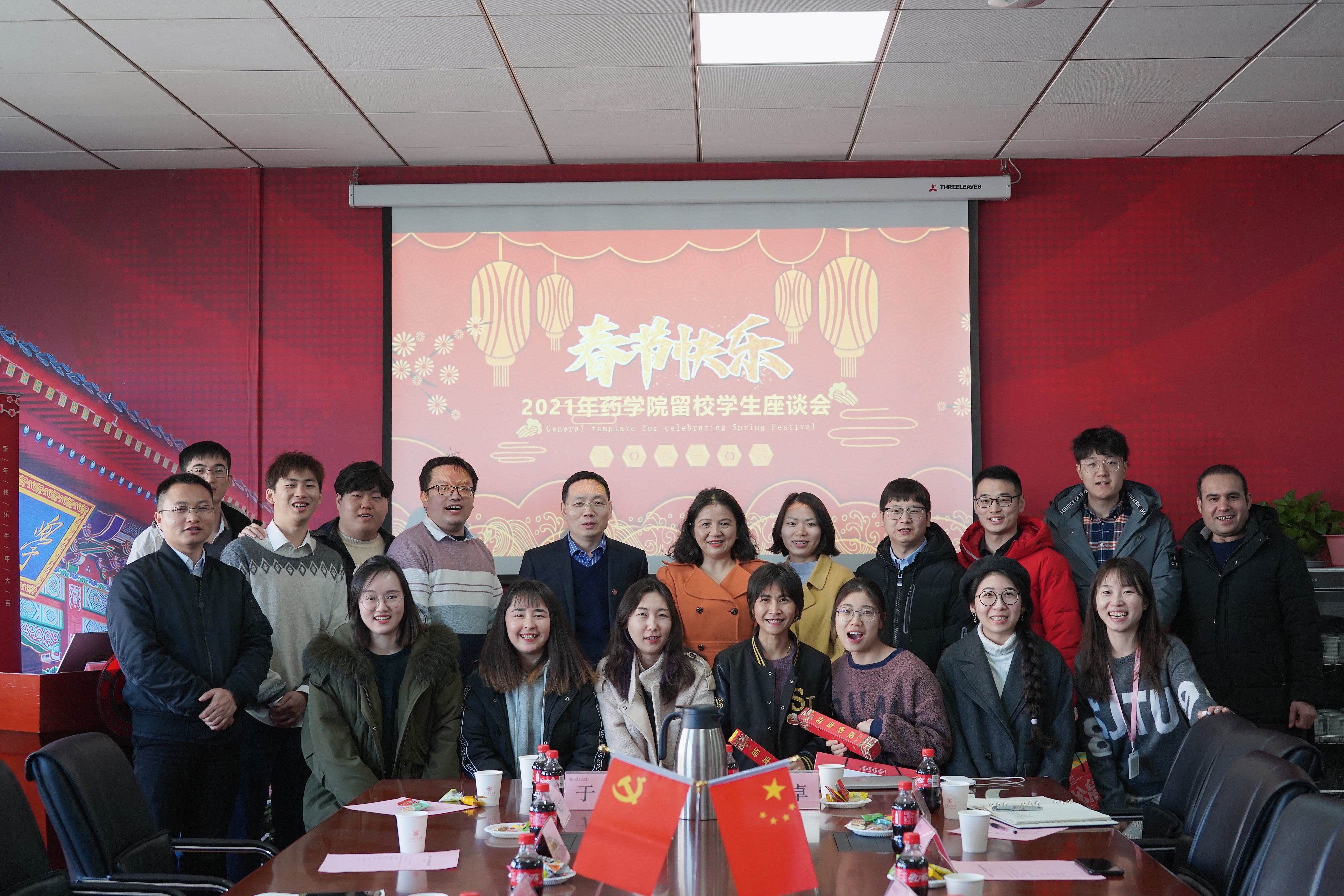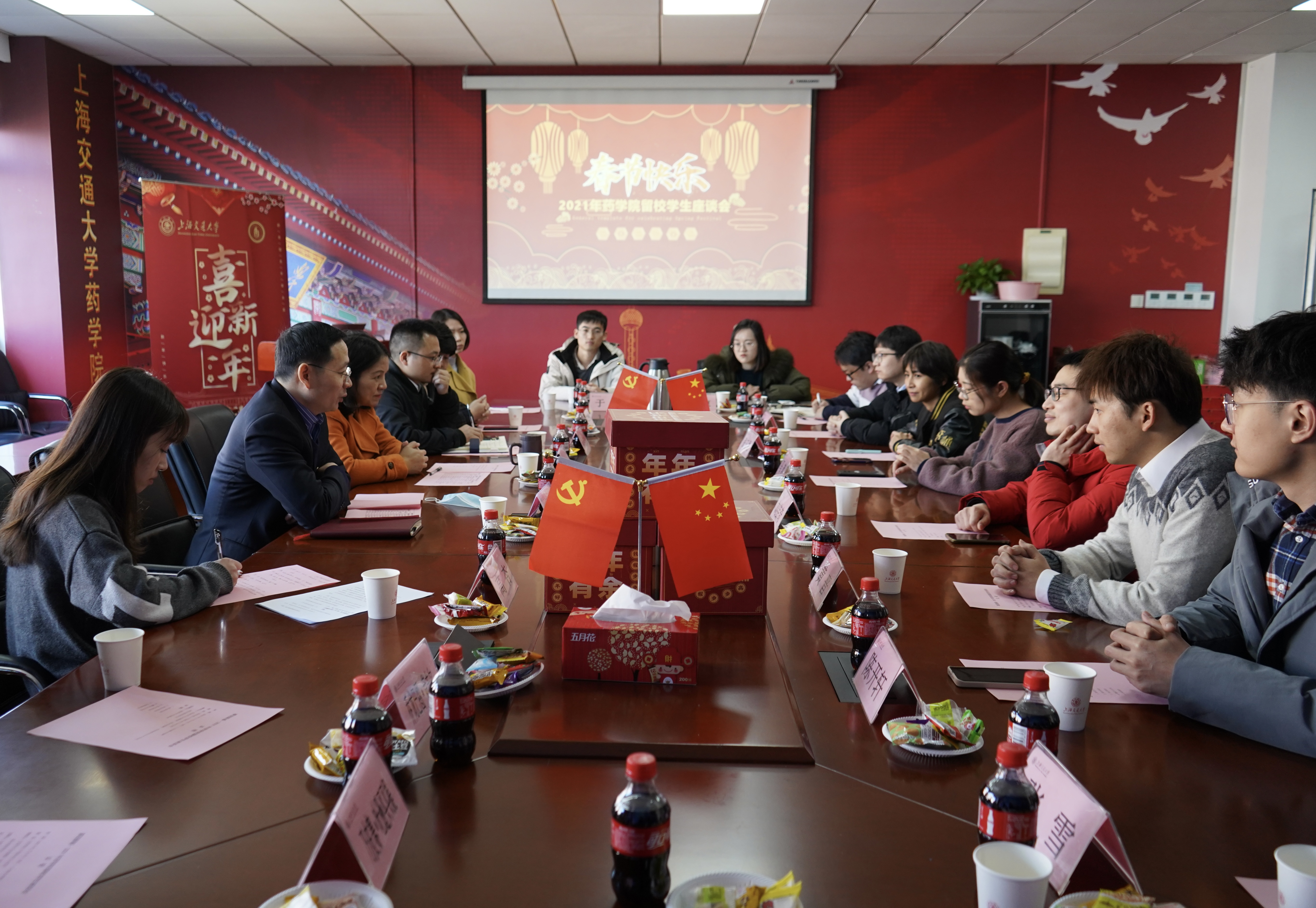 2月9日下午,药学院在5号楼412会议室举行“喜迎新春”主题留校学生座谈会。学院党委书记刘建新、院长张翱、党委副书记叶定剑与16名中外学生代表交流座谈。会议由团委书记高杏主持。