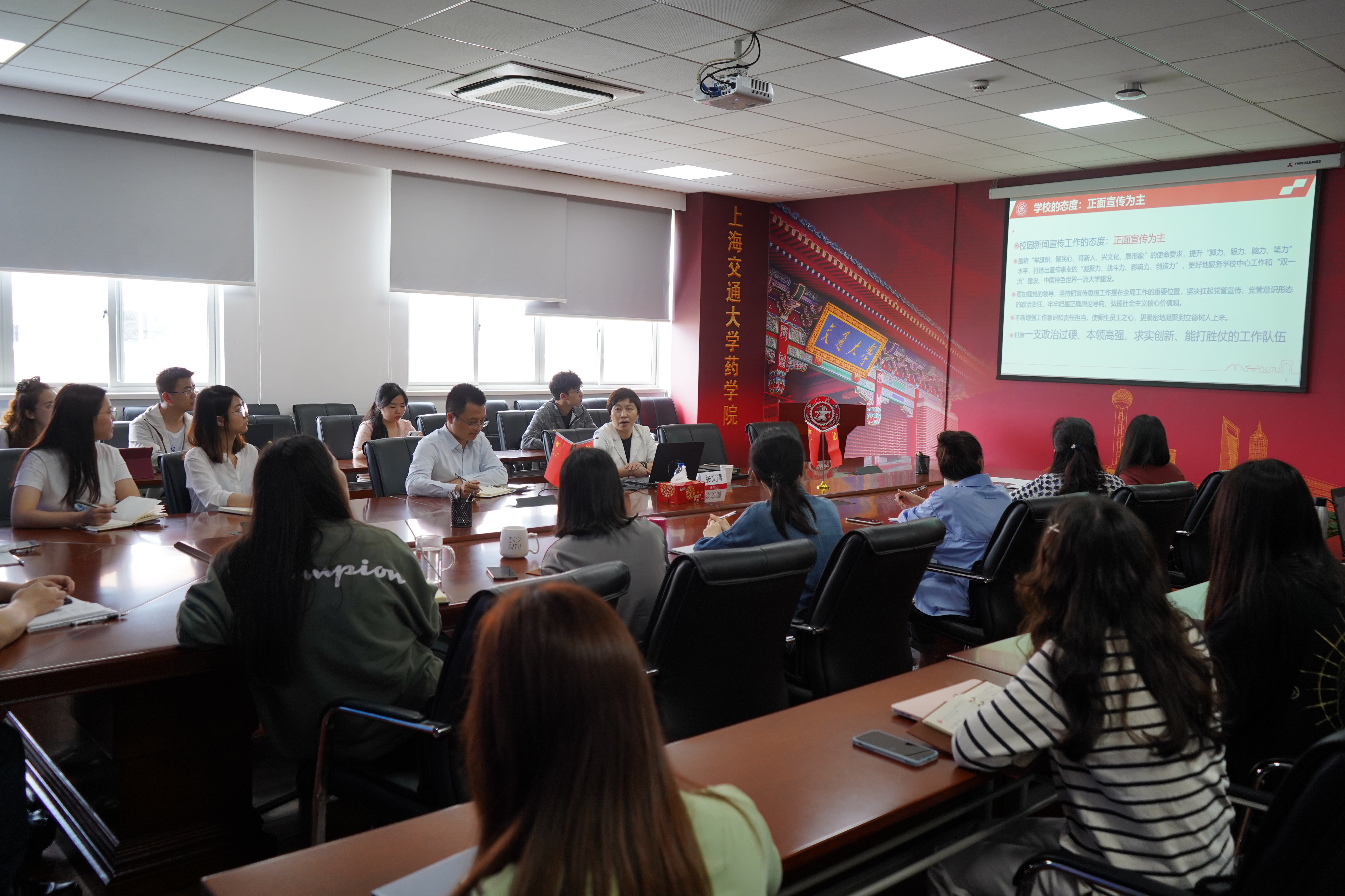 为进一步提高学院师生新闻写作能力,高质量展示学院风采及各部门核心工作,5月14日,药学院师生骨干培训班于5-412会议室开展第二次集体学习。校开心鬼传媒张文清受邀作《学校新闻采访写作交流》专题辅导报告,院党委副书记叶定剑以及师生骨干代表四十余人参加本次活动。活动由叶定剑主持。