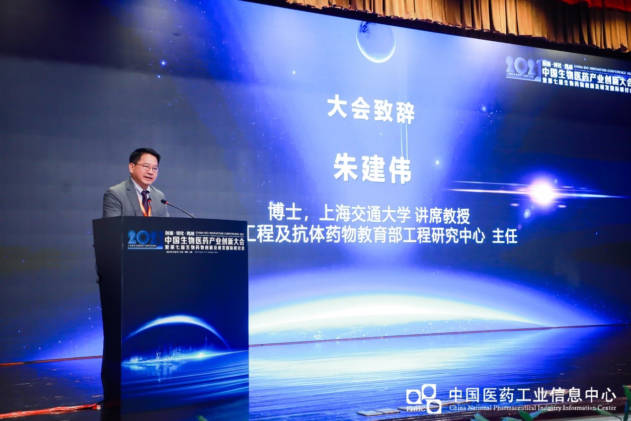 2021年10月13-14日,作为2021上海国际生物医药产业周系列活动之一,上海交通大学细胞及抗体药物教育部工程研究中心、药学院和中国医药工业信息中心联合主办2021中国生物医药产业创新大会暨第七届生物药物创新及国际研讨会在宝山美兰湖国际会议中心召开。上海交通大学药学院党委书记刘建新出席并致辞,上海交通大学讲席教授、细胞及抗体药物教育部工程研究中心主任朱建伟教授担任大会主席,来自国内外百余名专家学者、产业界人士参会。