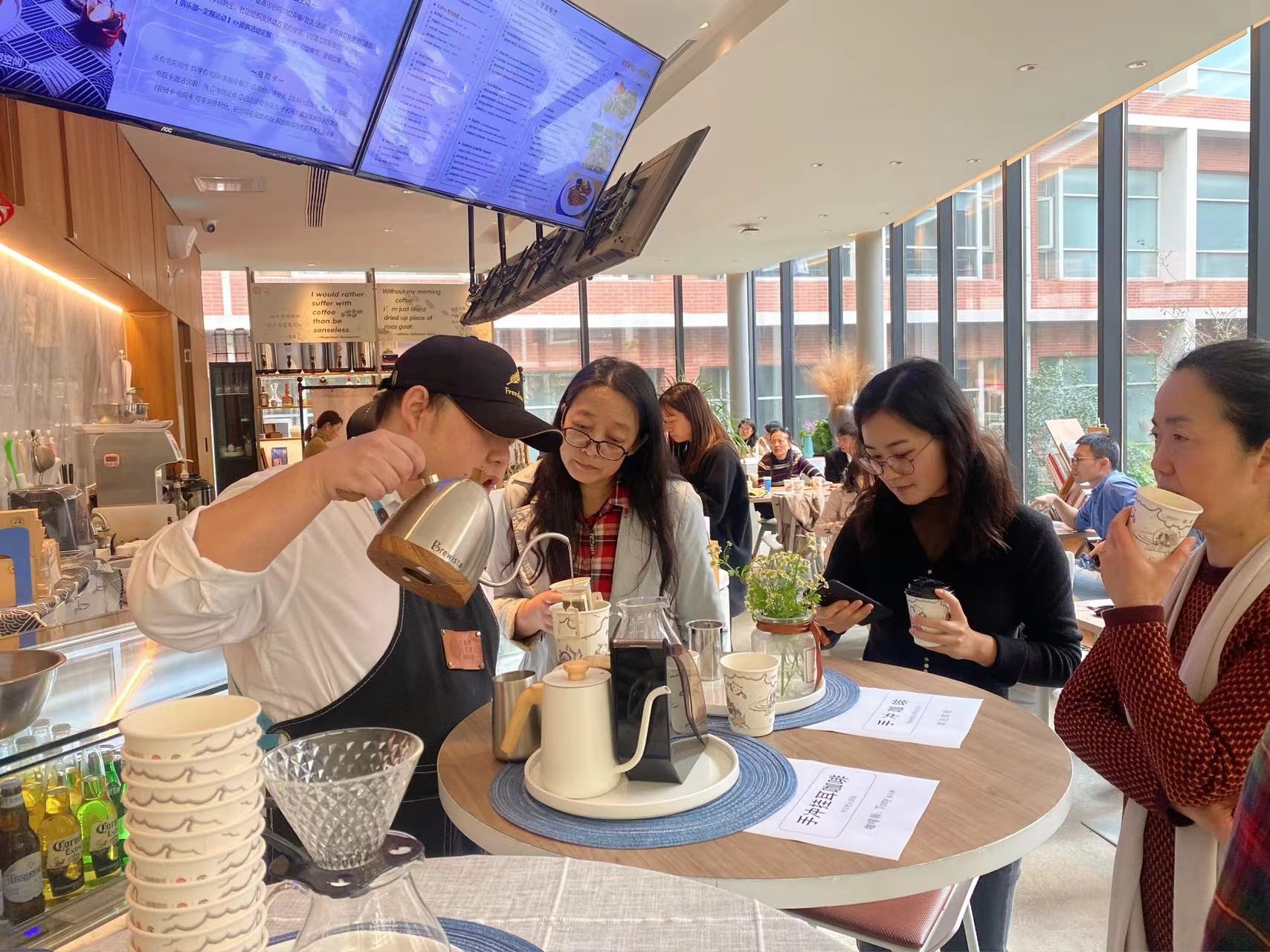 活动还邀请了咖啡师现场演示了手冲咖啡的完整制作过程,特别讲解了滤纸的折叠、水壶的使用、咖啡的品味等重要步骤。