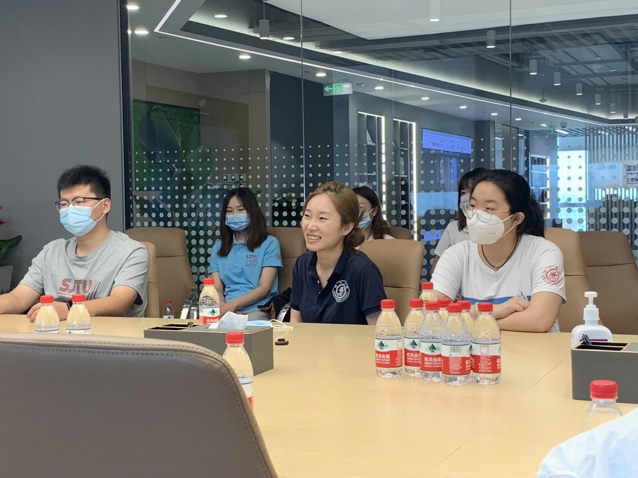 参观结束后,实践团与企业代表进行了近一步的交流,韩晓慧首先对交大药学院的老师和同学表示了热烈的欢迎,而后提到自己和傅惟惟都是交大的校友,看到学弟学妹们倍感激动与亲切。高杏就交大药学院的发展现状、毕业就业等基本情况进行了精炼的介绍,韩晓慧也为同学们讲解了公司进出口贸易的运作模式和工作内容,双方在交流中不断增进了友谊与认识。