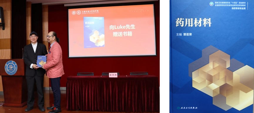 郭圣荣向Luke Lee赠送他主编的《药用材料》