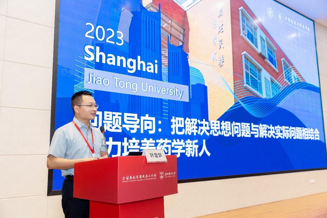 大会特邀北京大学、厦门大学分享在医学学生思政方面的经验做法,特邀我校及浙江大学分享在药学学生思政方面的经验做法。我校药学院党委副书记叶定剑以《问题导向,把解决思想问题与解决实际问题相结合,着力培养时代新人》为题进行分享,从推动全员育人、强化教师思政与学生思政相互增益、守正创新做好思政工作、践行一线规则是提升思政工作质量的前提、坚持问题导向是做好思政工作的重要法宝等方面进行了阐述。