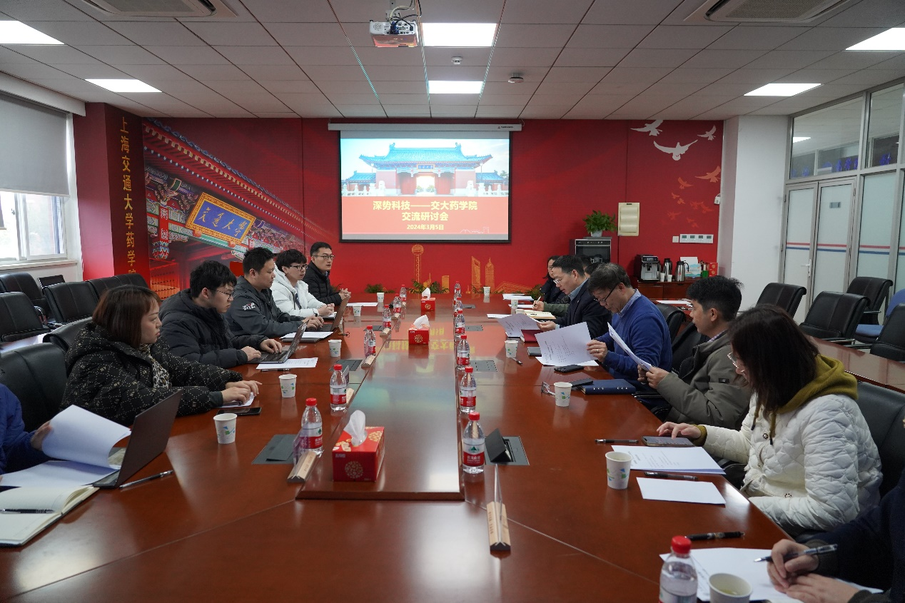 3月5日上午,深势科技大分子研发负责人温翰博士等一行到访上海交通大学药学院进行交流研讨。药学院院长、特聘教授张翱,马步勇教授,丁春勇研究员、长聘教轨副教授沈玉道、邹一可等教师代表参加本次座谈交流。会议由药学院院长张翱主持。