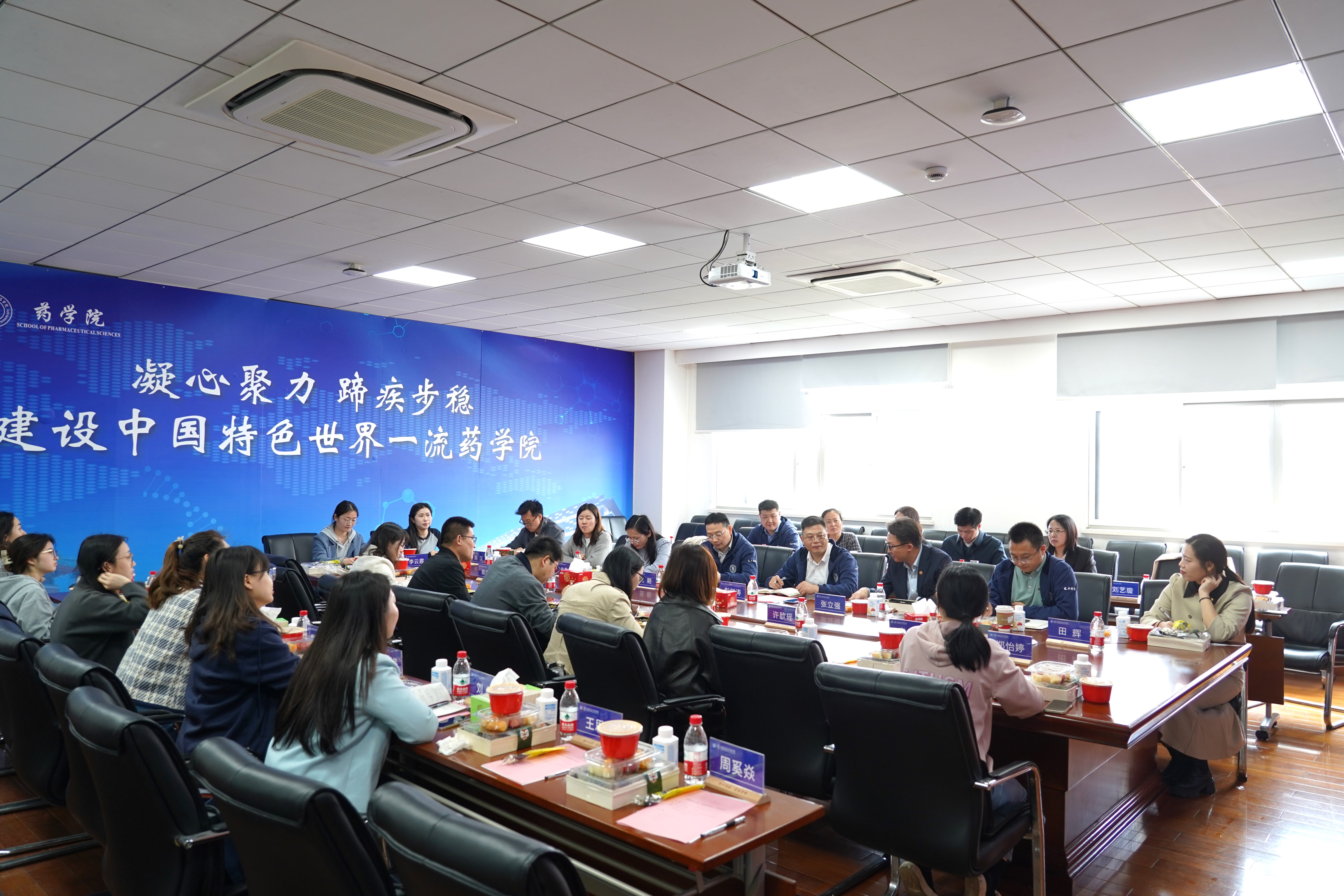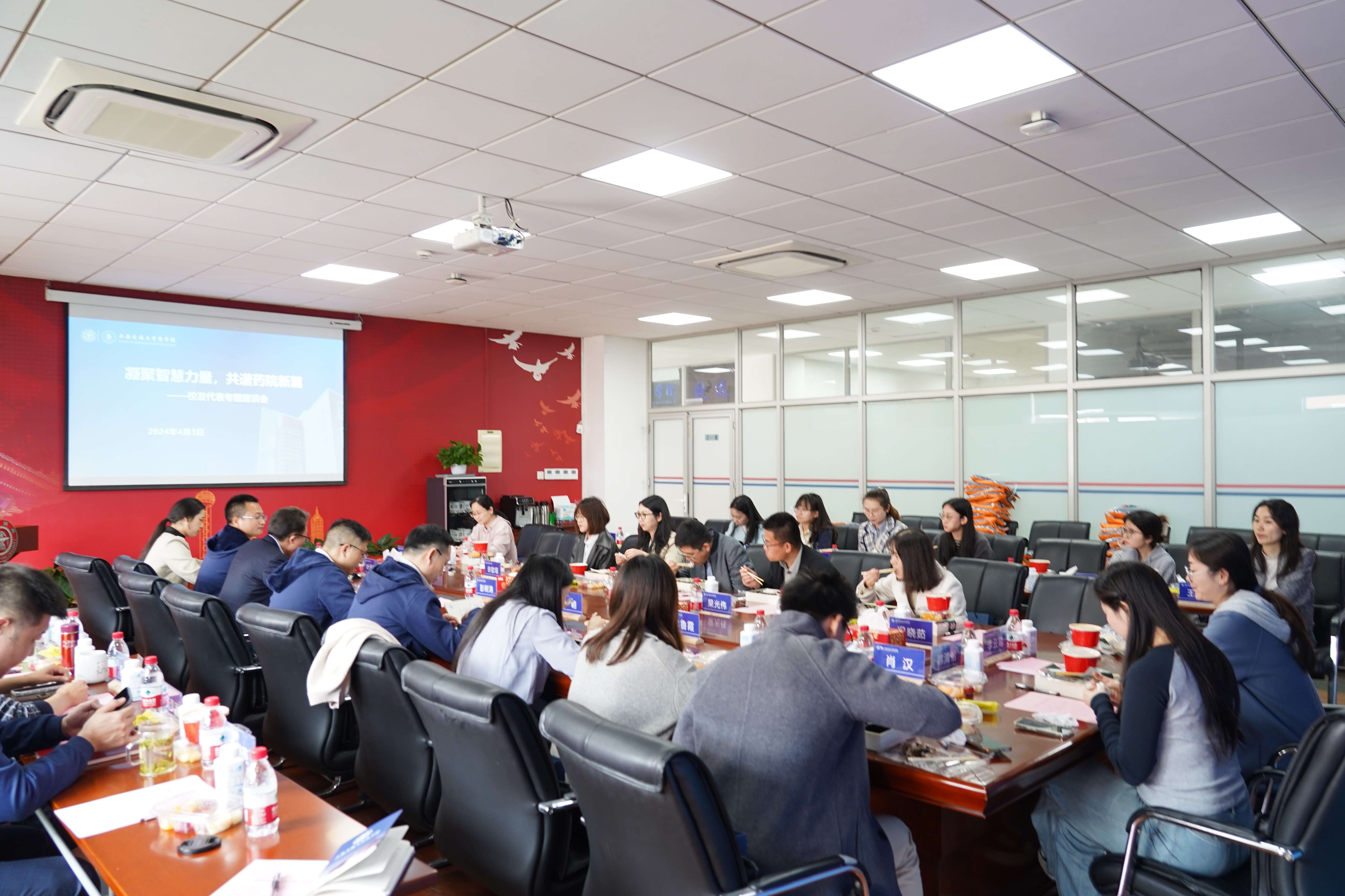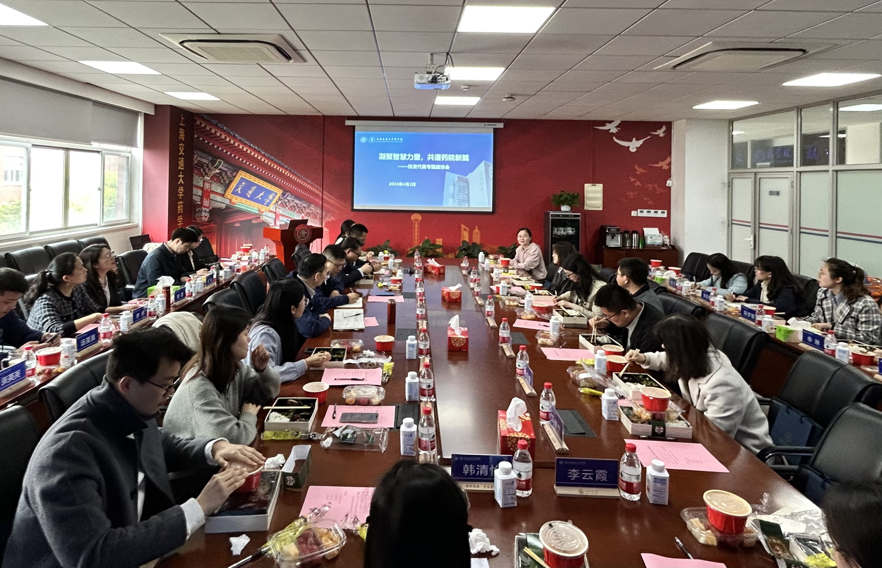 2024年4月3日中午,药学院召开“凝聚智慧力量,共谱药院新篇”部分校友代表专题座谈会,邀请了从药学院毕业或曾在药学院工作的30余名在校校友代表参加。学院党委书记彭树涛、院长张翱及学院机关各部门负责人出席会议。会议由党委副书记叶定剑主持。