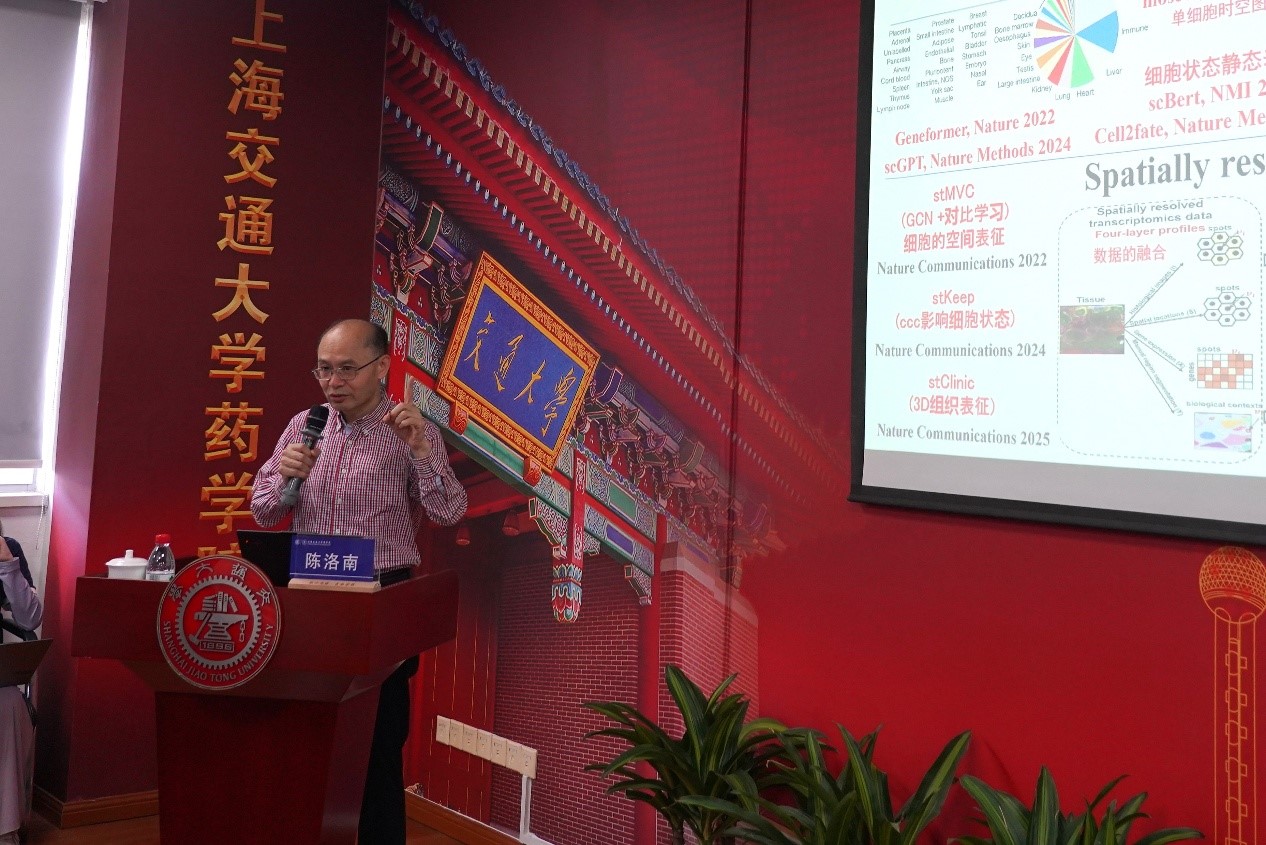 4月15日,中科院生化细胞研究所研究员,上海交通大学数学科学学院/人工智能学院讲席教授,国科大杭州高等研究院首席教授陈洛南受邀访问上海交通大学药学院,并做客“‘AI+免疫’前沿论坛”,为师生带来题为《动力学刻画与AI赋能的生命科学》的精彩报告。报告会由药学院院长张翱主持,师生代表50余人参加。