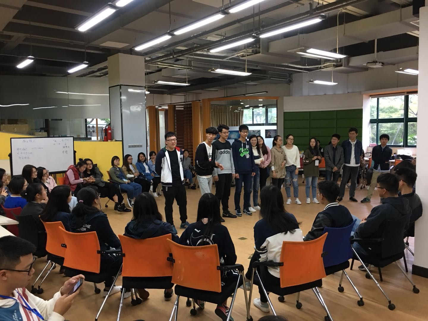 活动开始前大家先做了简单的自我介绍,彼此间都有了一定了解,然后同学们进行自由分组,之后便由老师带领着同学们开始进行活动。很多同学都是第一次参加这种体验式培训,每个人都显得既兴奋又开心,“急速六十秒”、“报纸建塔”等新奇有趣且富有意义的游戏让同学们乐在其中、学在其中。