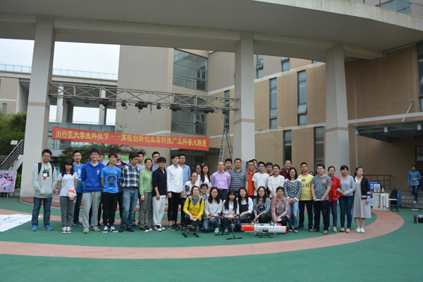5月14日14:00, 闵行大学生科技节暨高校创新创业案例推广及科普大联展活动在华东师范大学大学生活动中心门口盛大举行。参与本次科技节展览的志愿者们分别来自上海交通大学药学院、机械与动力工程学院、电子信息与电气工程学院、物理与天文系和华东师范大学的健康社团。