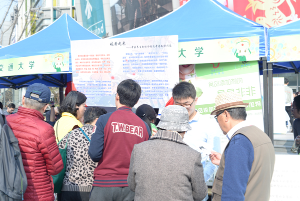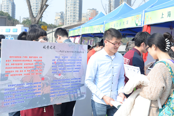 2016年3月5日雷锋纪念日,由闵行区文明委和上海市食品药品监督管理局主办的志愿服务活动在莘庄仲盛广场圆满开展。药学院师生在主办方的邀请下,动员了院青志队以及“翡翠丝带”公益组织积极参与,以“岐黄之术——中医养生知识介绍及中药知识问答”为主题,为公益事业的传承与发展奉献了自己的绵薄之力。