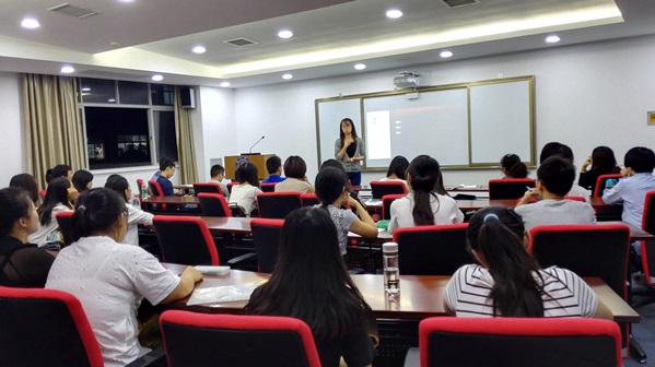 在主席和副主席完成研究生会的整体介绍后,接下来就到了各部门宣讲环节。办公室、学术部、公关部、文体部、记者团、生活部、宣传部、团委组织部、科学商店的部长或副部长纷纷上台对自己部门的情况进行了详细的介绍。他们或轻松幽默,或庄重沉稳,或文艺优雅,会场中是不是想起同学们开心的笑声,整个会场一片其乐融融。讲到重要处,有些同学不禁记起了笔记,那认真专注的样子让我们对药学院研究生会的未来充满了希望。