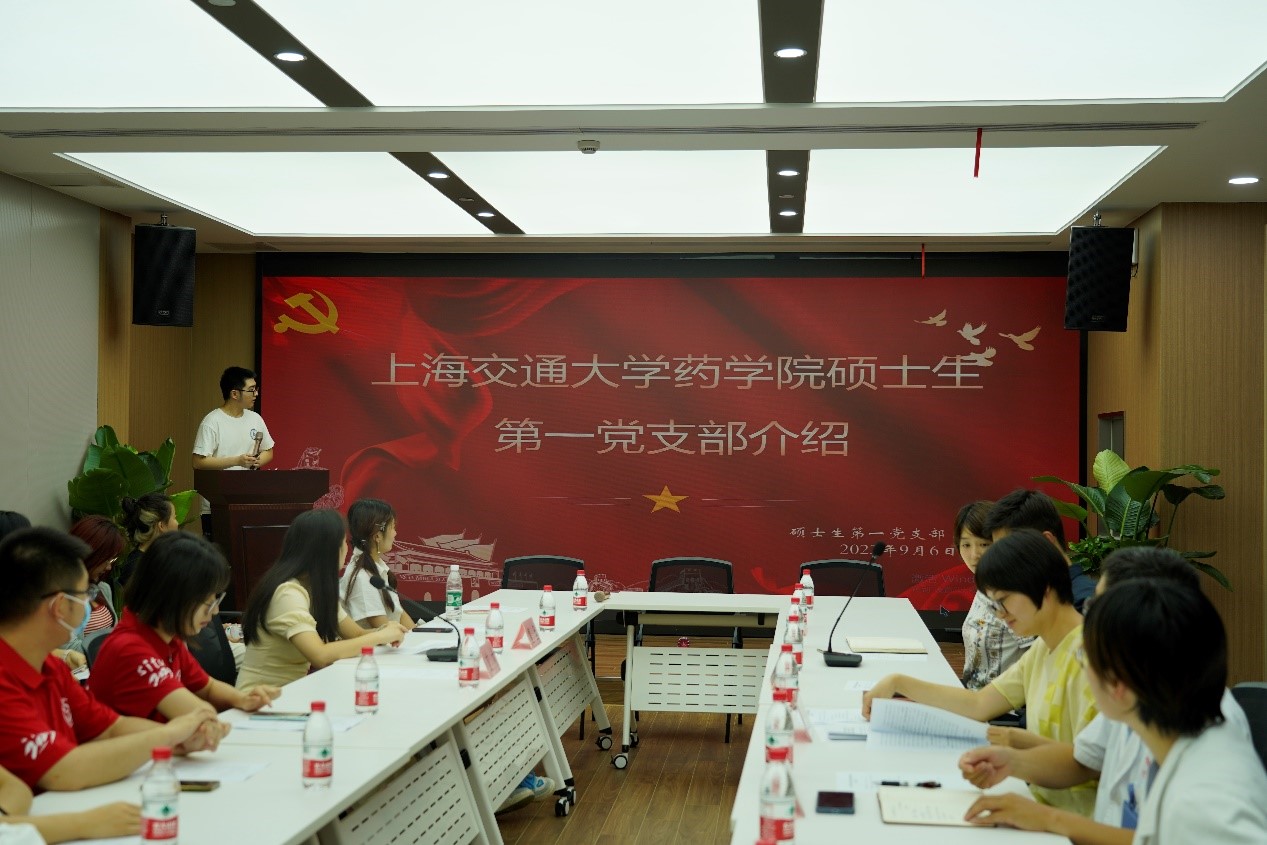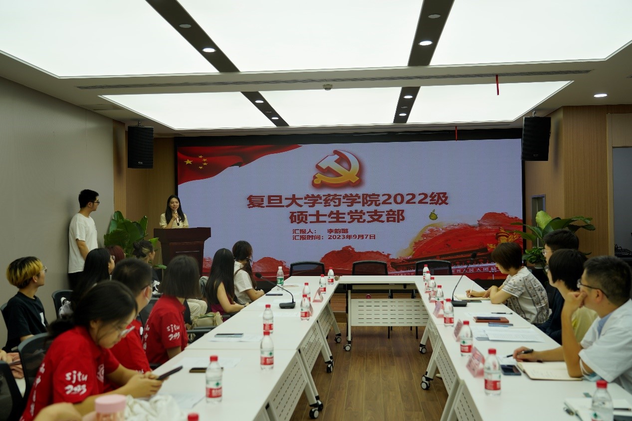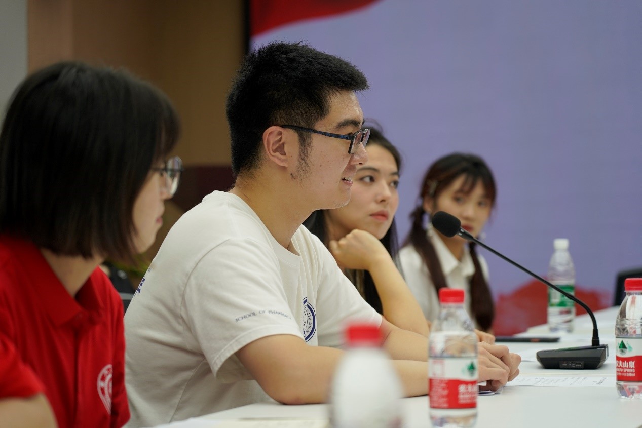 座谈会上,上海交通大学药学院第一党支部书记段智然、复旦大学药学院学生党支部书记李韵璐分别介绍了各自支部情况。