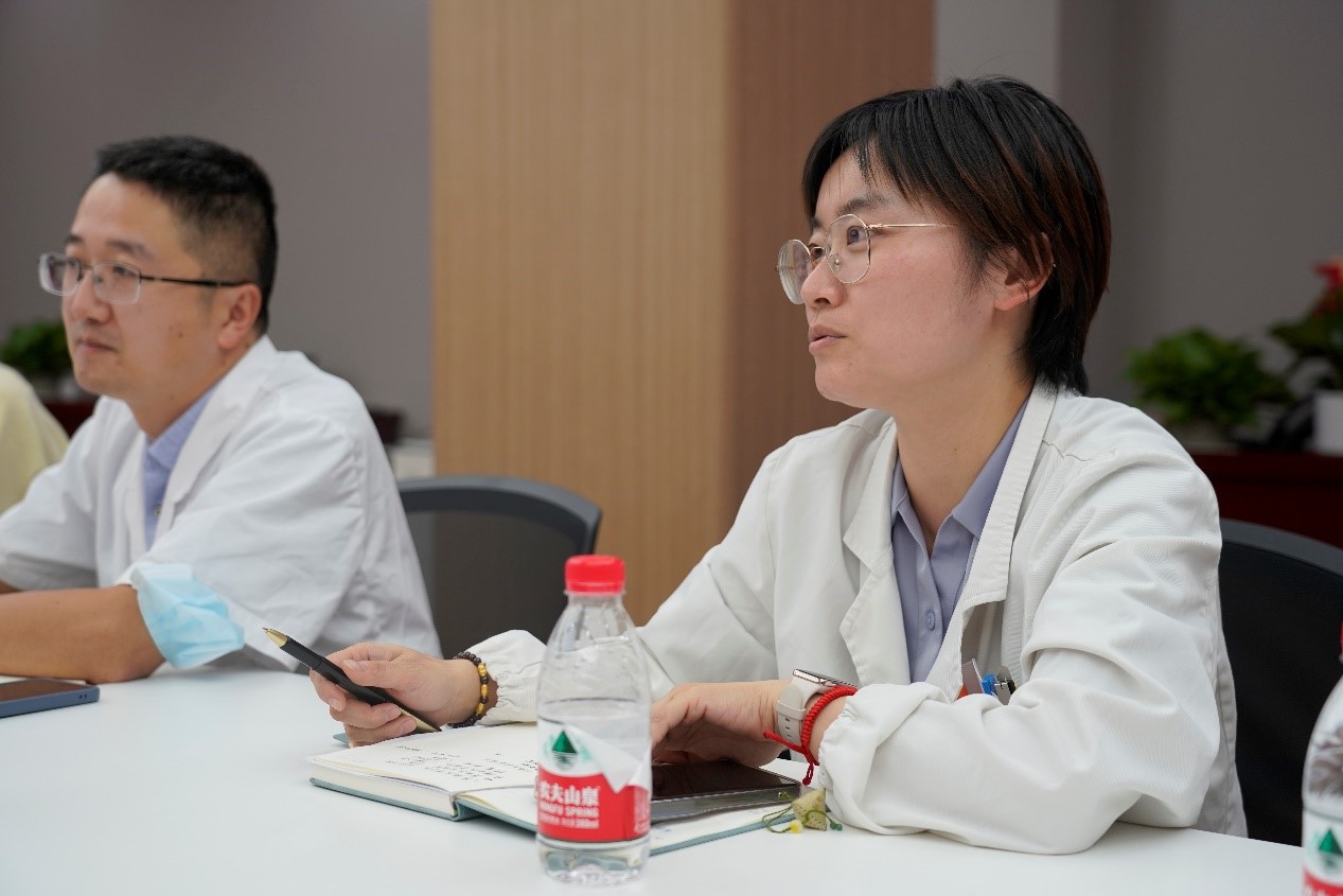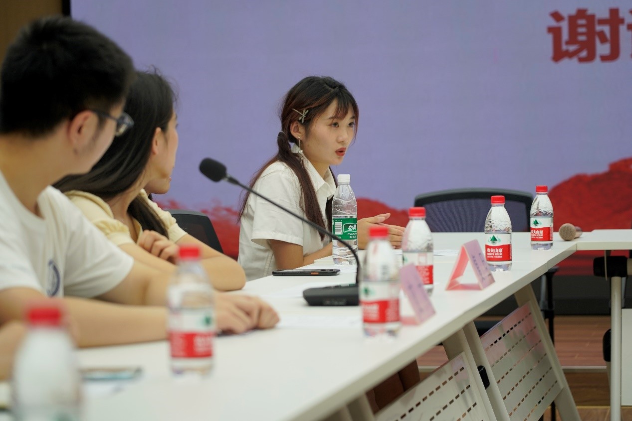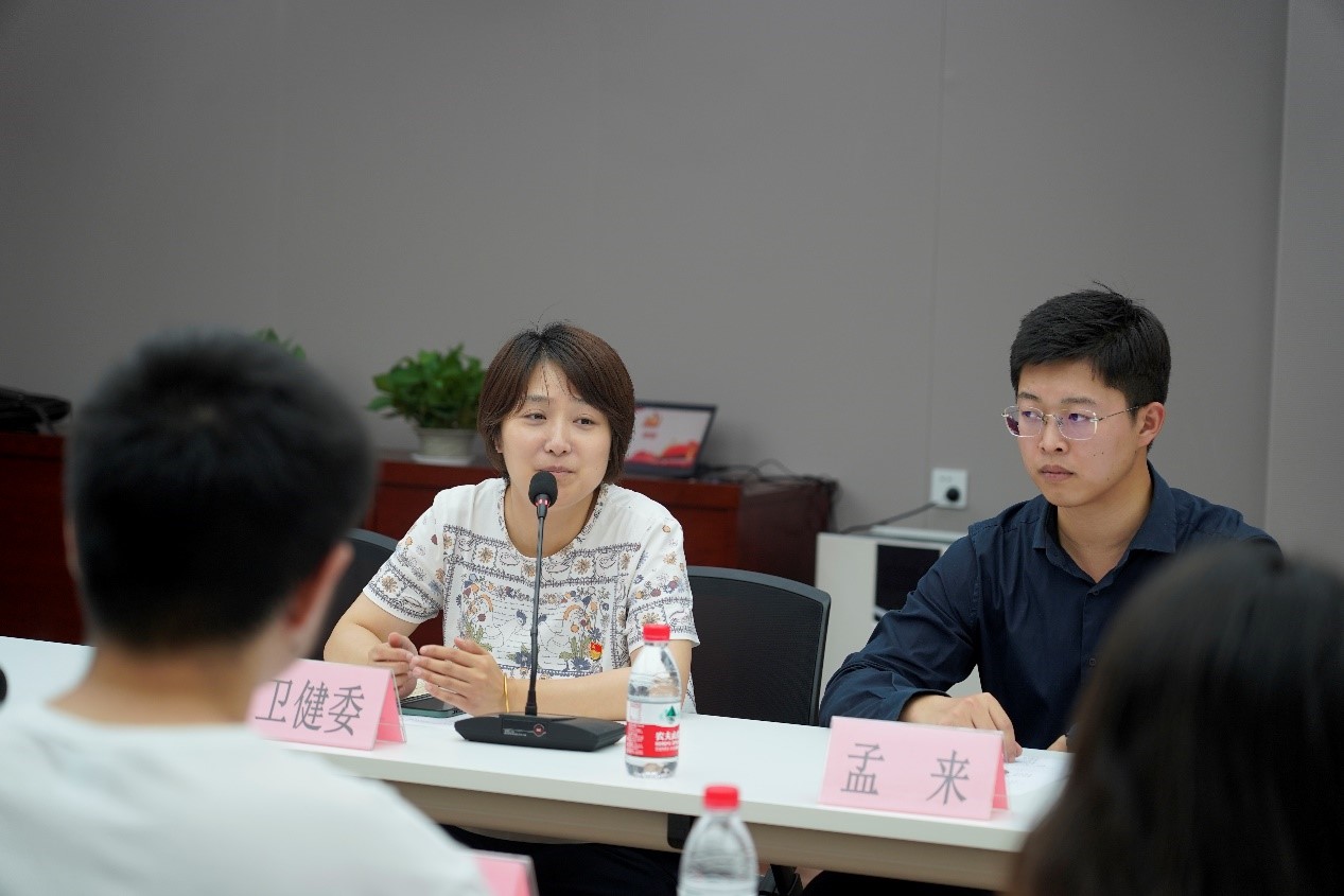座谈会上,上海交通大学药学院第一党支部书记段智然、复旦大学药学院学生党支部书记李韵璐分别介绍了各自支部情况。