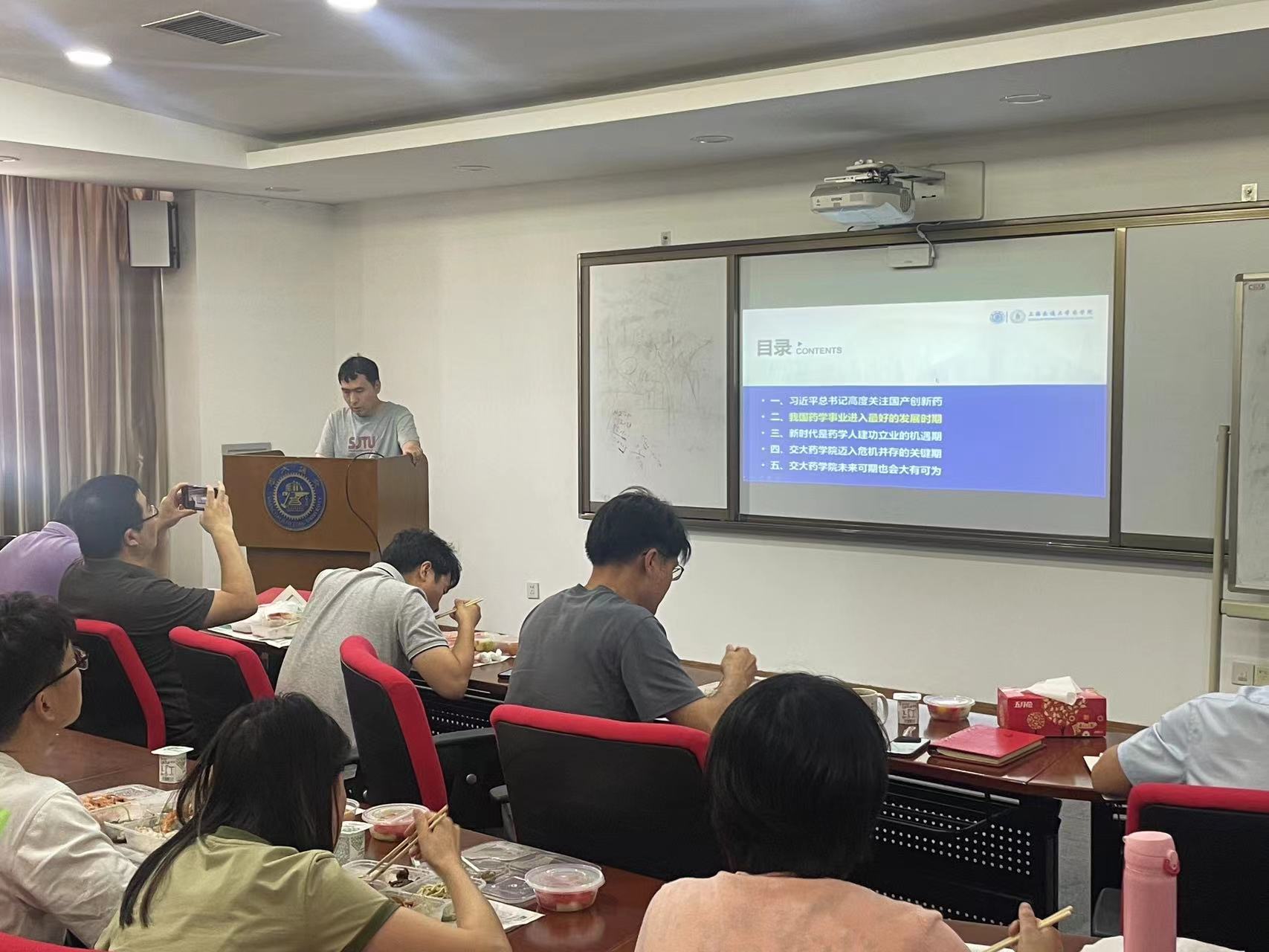 6月14日中午,药学院药物发现党支部联合硕士生第三党支部在生物药学楼5号楼312会议室举行支部学习交流活动,孙占奎副院长和张振锋支部书记为参会师生党员上专题党课。药物发现党支部和硕士生第三党支部全体党员参加,活动由学院魏娟老师主持。