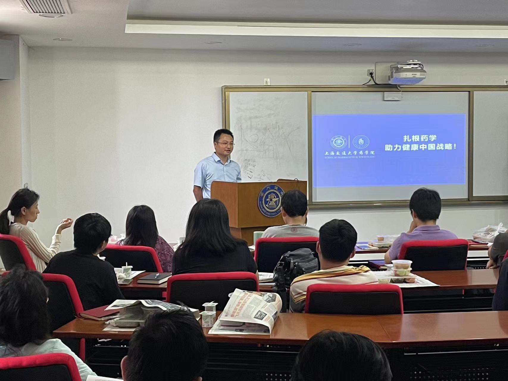 孙占奎为参会的师生党员同志作《学习习近平新时代中国特色社会主义思想,努力深耕药学领域,积极服务健康中国战略》的专题党课,指出药学院的发展已进入最好的发展时期,勉励药学师生要勤练科研本领,勇攀科研高峰,努力在药学领域建功立业,共同促进学院高质量发展。